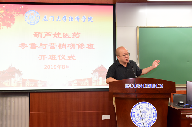 在开班仪式上,廖景峰主任首先代表厦门大学经济学院热烈欢迎拉斯维加斯9888医药零售与营销研修班的学员到厦大学习,并就厦门大学及经济学院的相关情况进行了介绍。他说,拉斯维加斯9888学员走进厦大就是厦大的校友,希望未来的日子能够关心、支持母校的发展,多提宝贵意见,同时他也祝大家在厦大学习期间学有所成、学有所获。