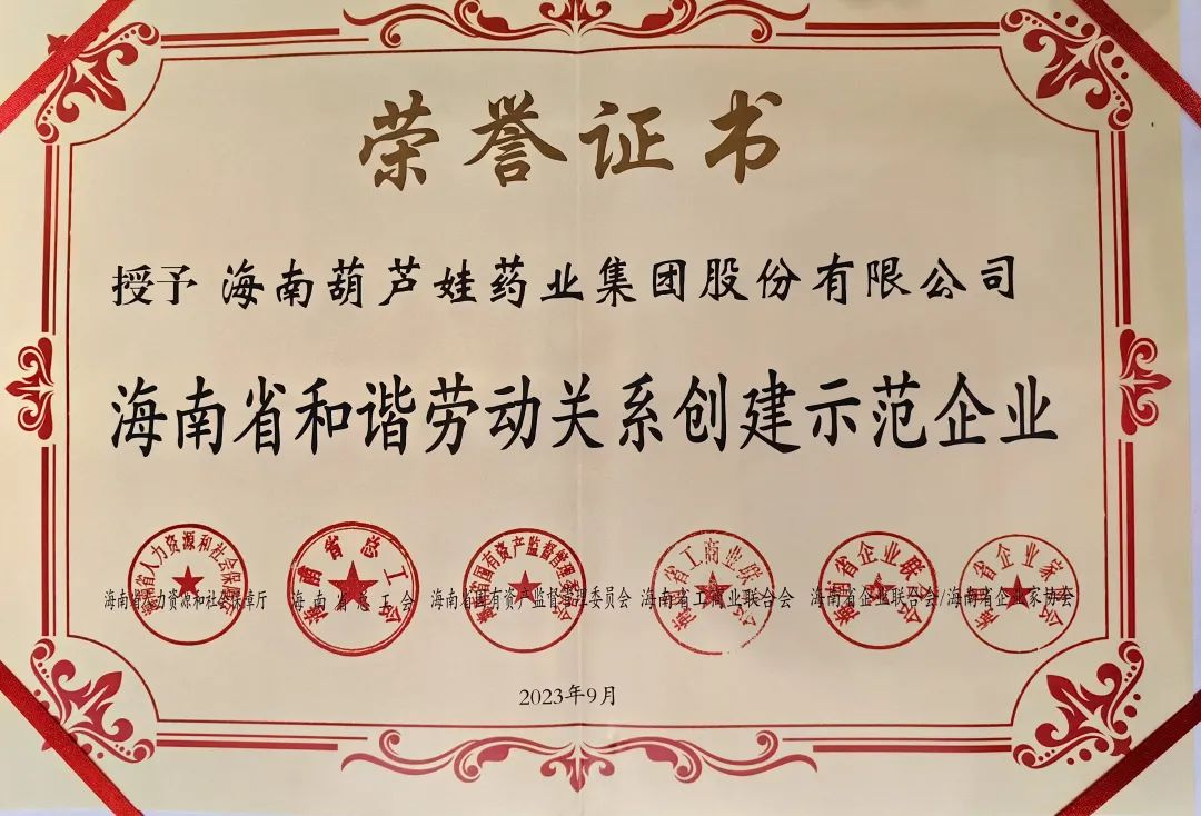 拉斯维加斯9888药业集团获评“海南省和谐劳动关系创建示范企业”